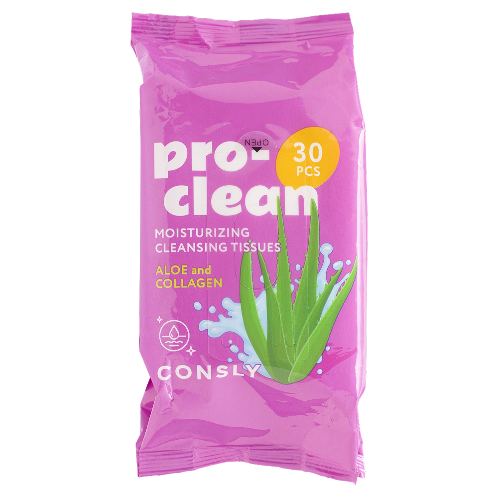 240699 Consly Очищающие и увлажняющие мицеллярные салфетки с коллагеном и алоэ, 30 шт |