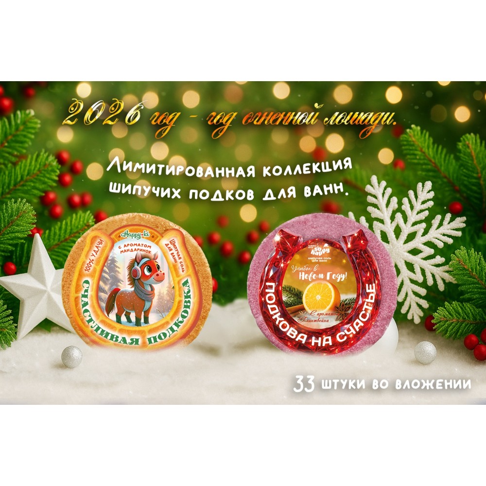 Альтернативное название Шипучая соль для ванн 90г Happyki "Счастливая подковка" (желтая)